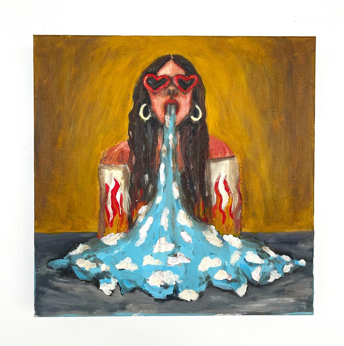 Acrílica e pastel seco sobre tela