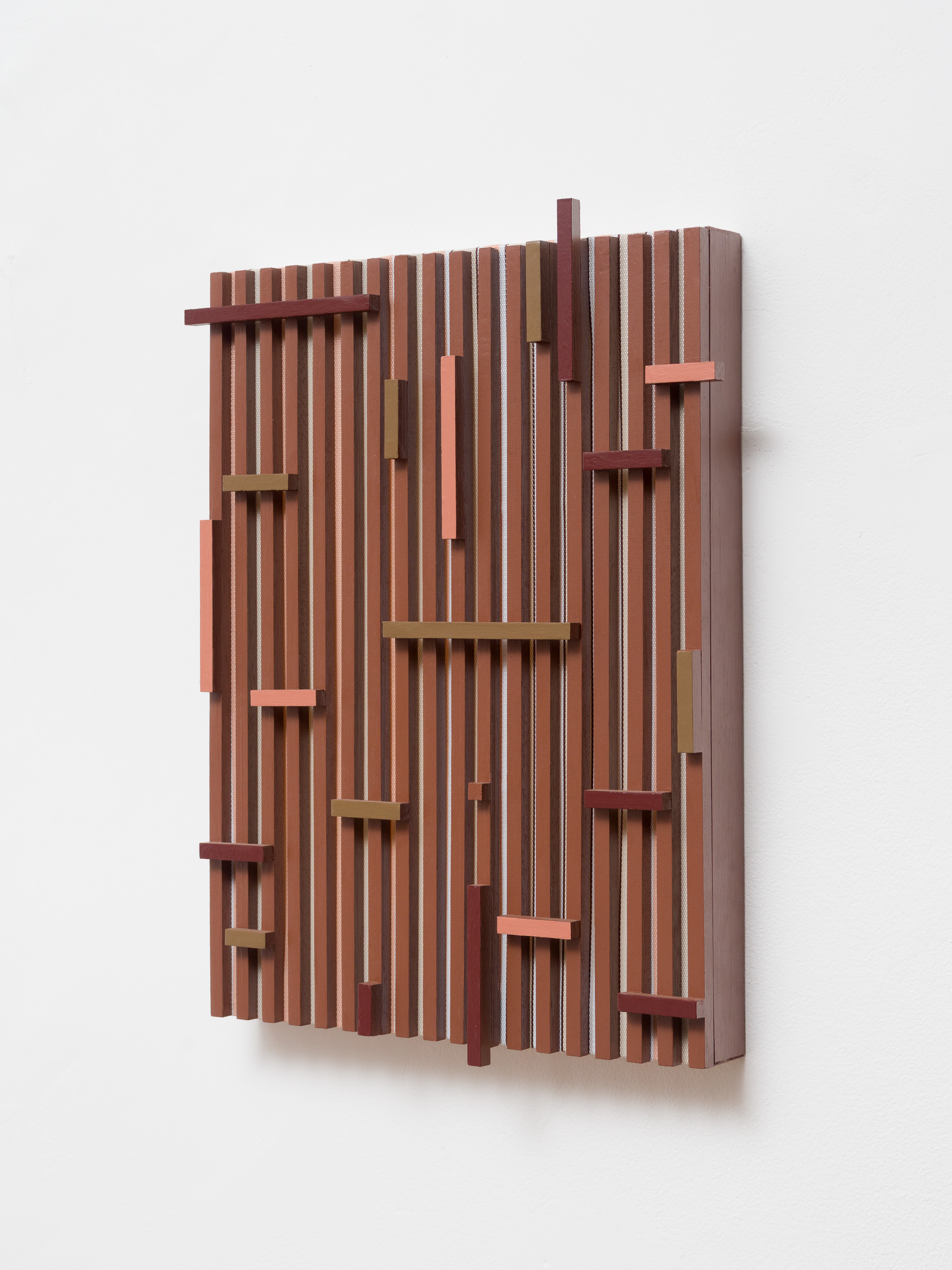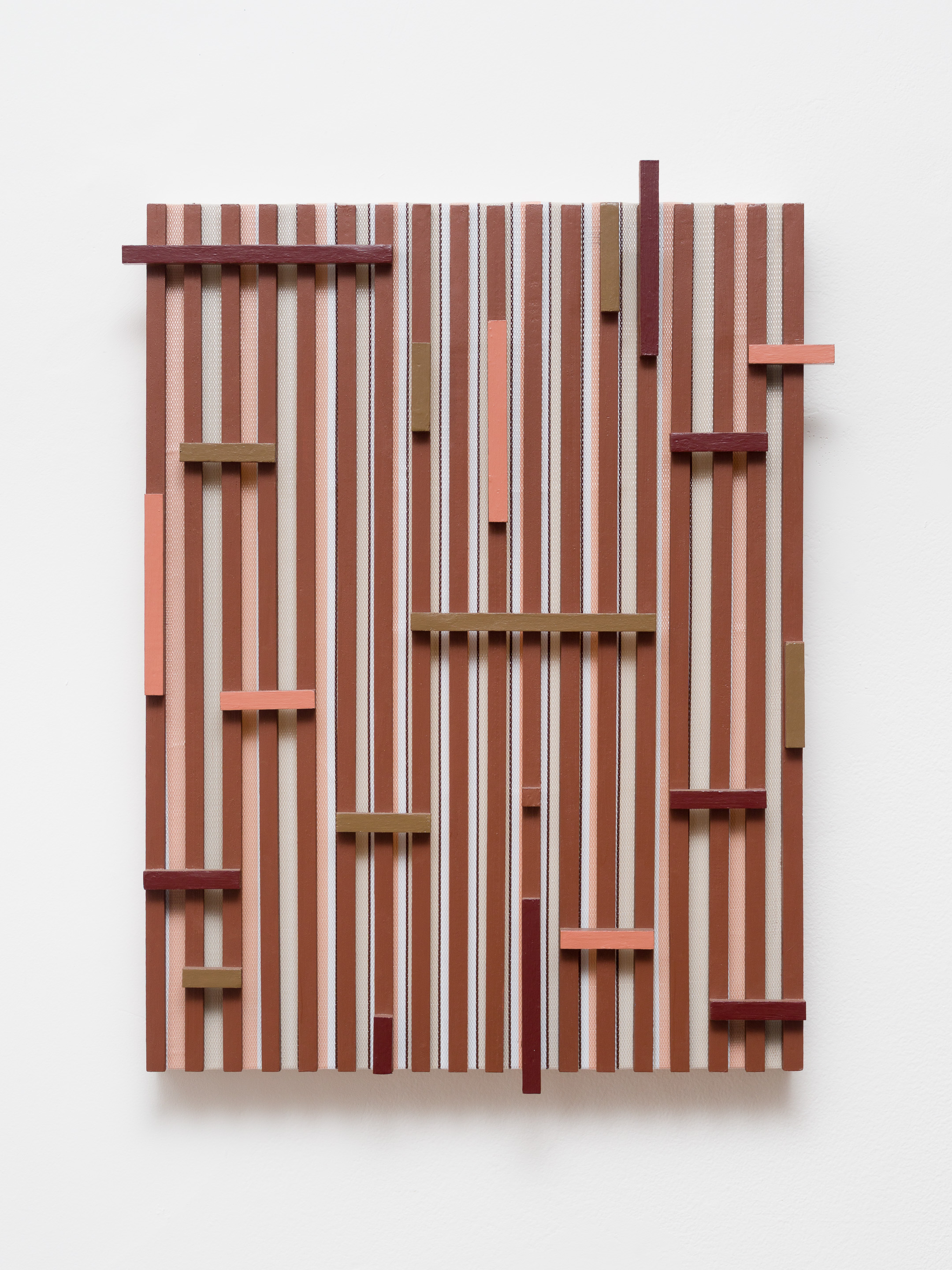 Nylon strips, wooden slats and enamel paint