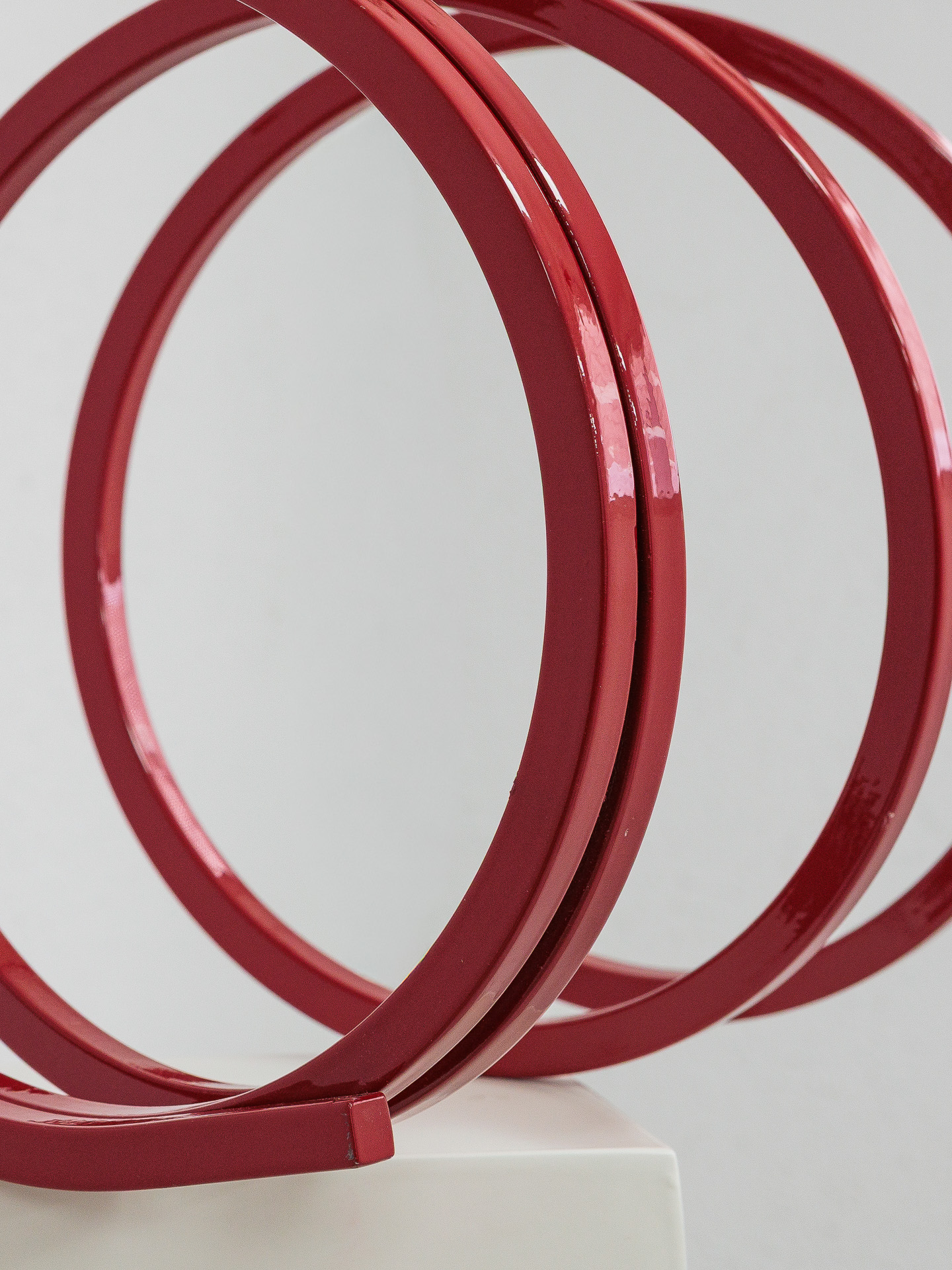 Escultura lacada en rojo de forma manual y tornada en tubo macizo cuadrado