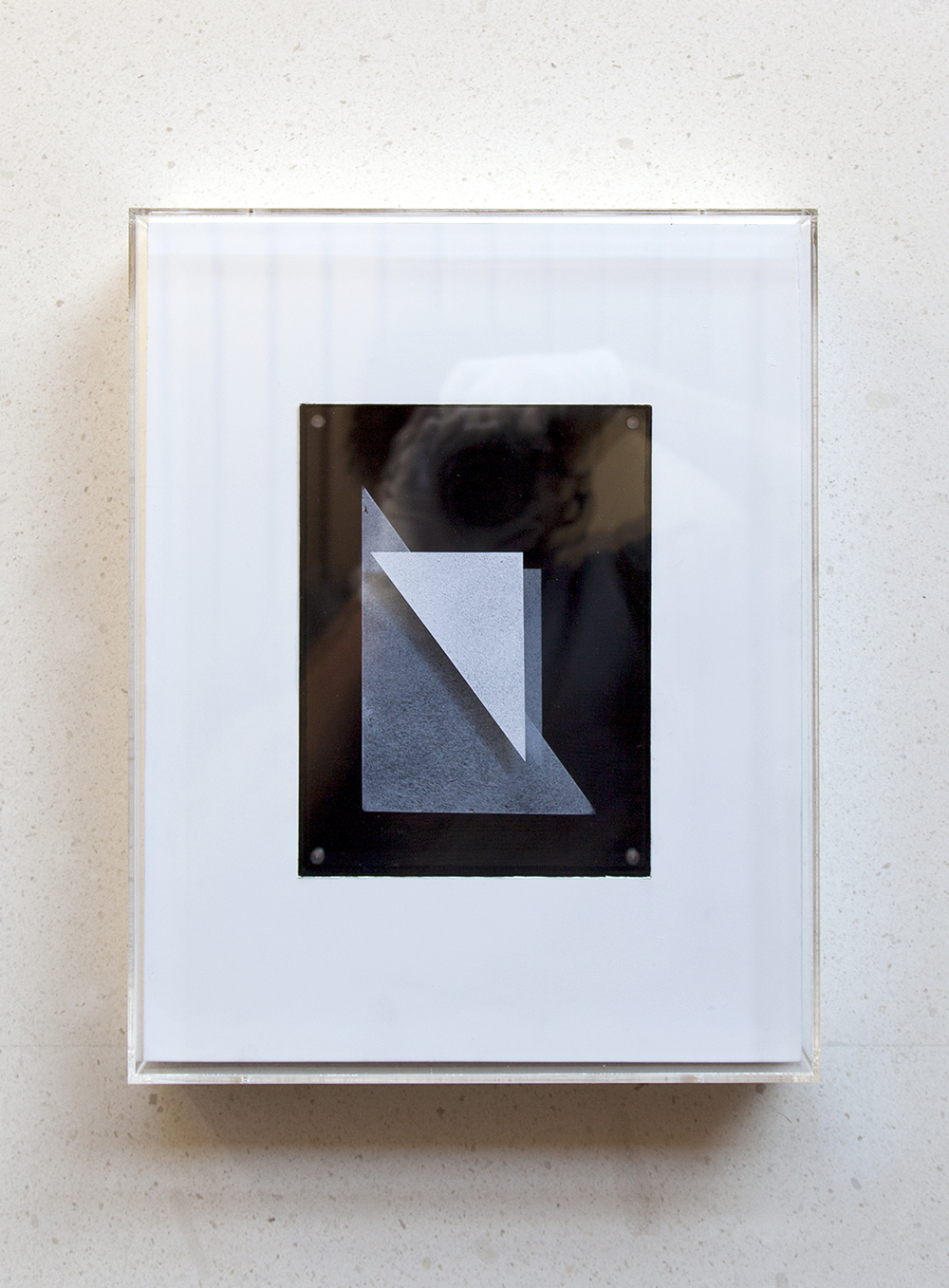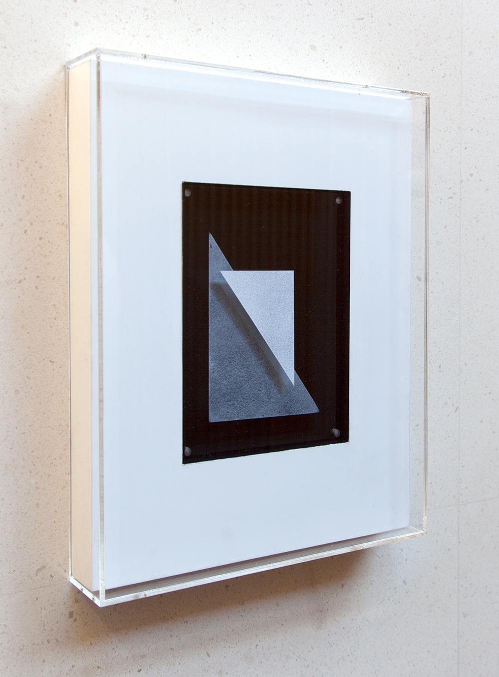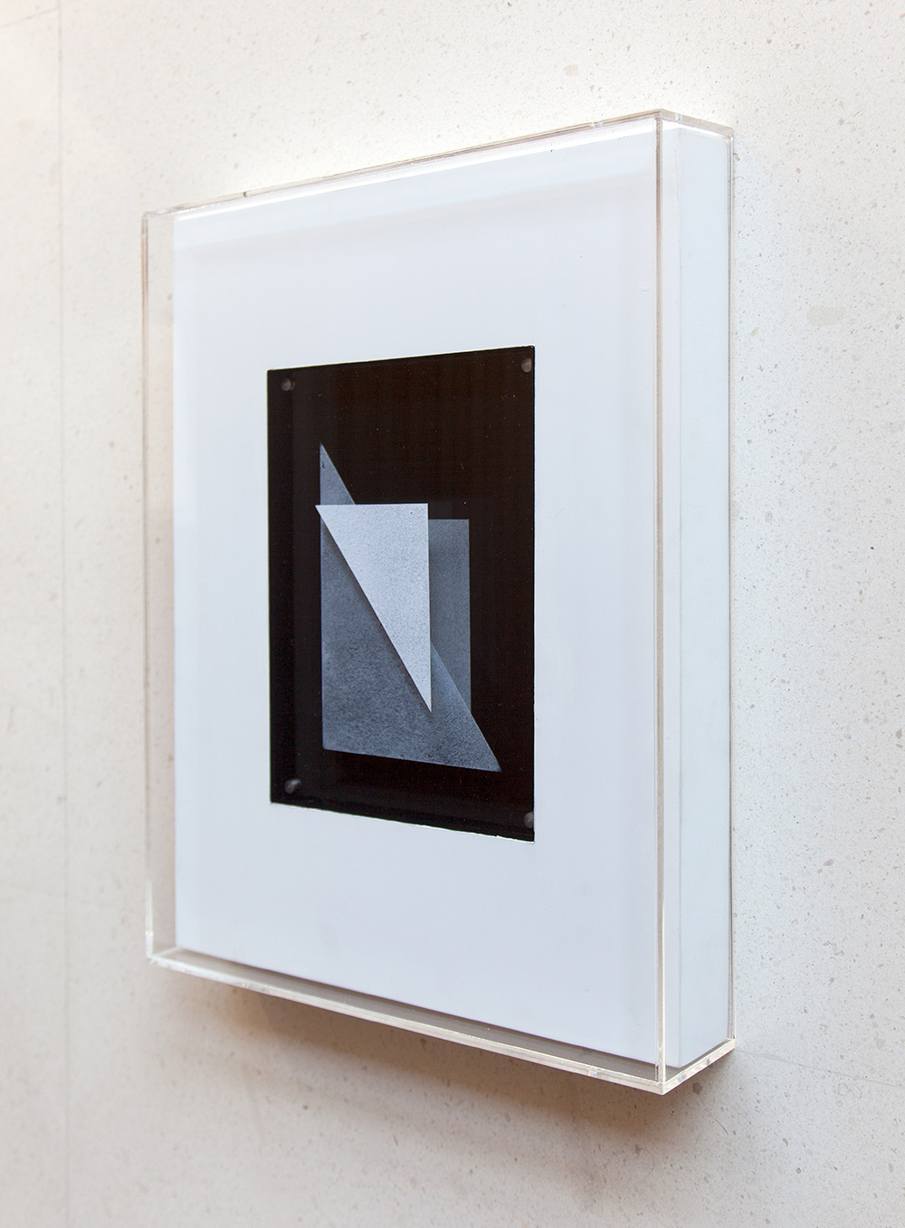 Acrílico sobre piezas de metacrilato insertado en bastidor y contenido en urna de metacrilato