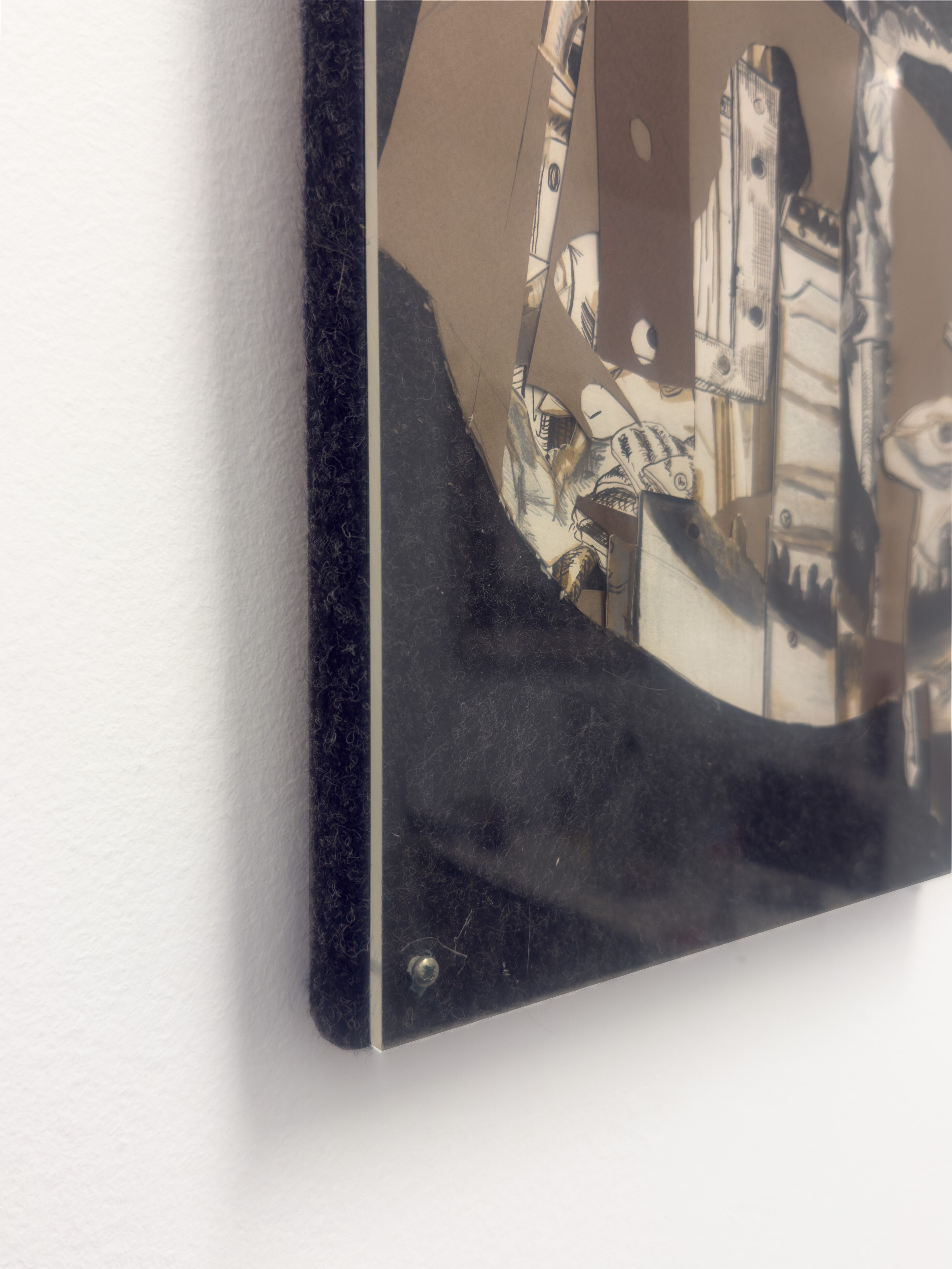 Tejido, técnica mixta, collage y metacrilato sobre madera
