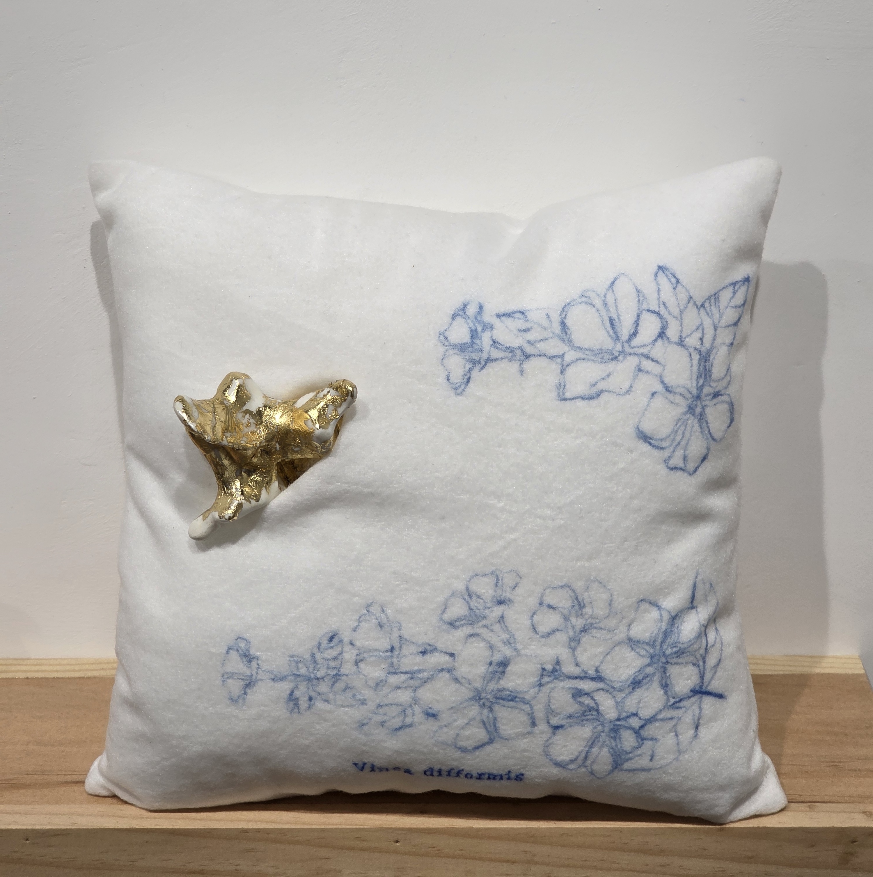Tejido, tinta, cerámica cromada en nácar y pan de oro 23,75 quilates